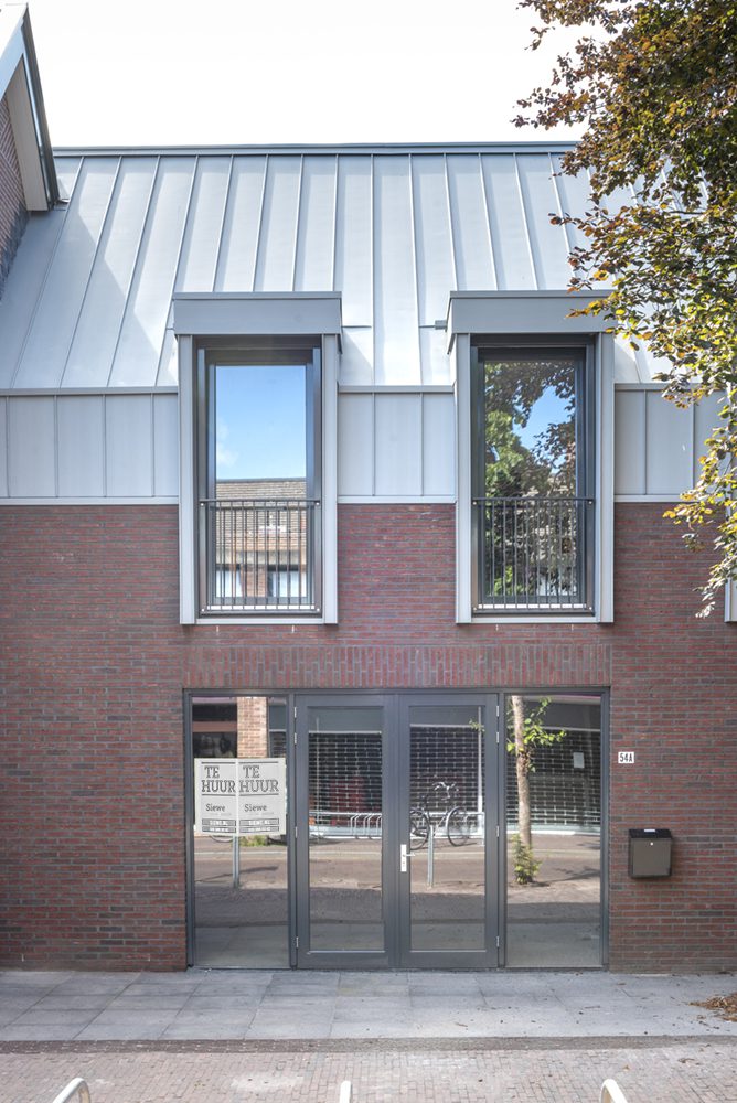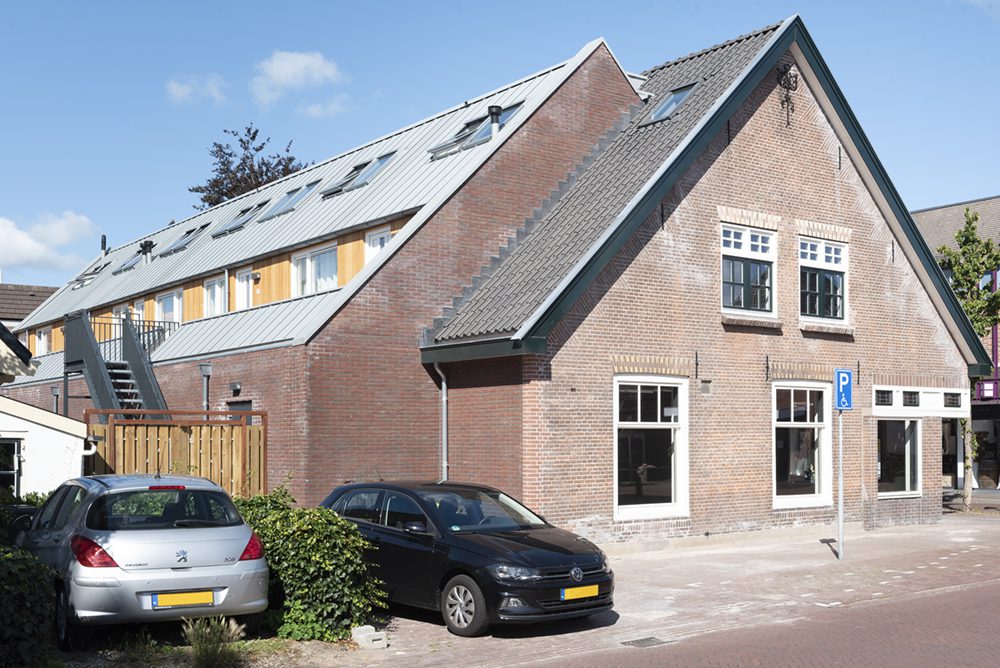 Voor de herbouw van het bestaande deel is het historische karakter behouden gebleven. De wanden die er na de brand nog stonden, hebben we ingescand met een 3D-scanner om de exacte maatvoering te bepalen. Het glas-in-lood is hersteld en de nieuwe dakkapellen hebben franse balkons gekregen. De appartementen zijn toegankelijk via een gallerij aan de achterzijde.