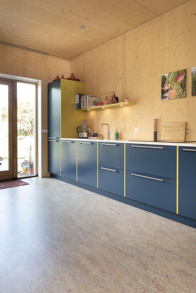Het bestaande gebouw is volledig geïsoleerd en de uitbreiding is uitgevoerd met CLT(cross laminated timber) panelen. Dit houtbouwproduct is opgebouwd uit kruislings verlijmde éénlaagse platen. De lagen worden steeds haaks op elkaar verlijmd, waardoor de werking uit het hout wordt gehaald en een sterk constructief bouwmateriaal ontstaat. De uitbouw voldoet aan alle moderne bouweisen.